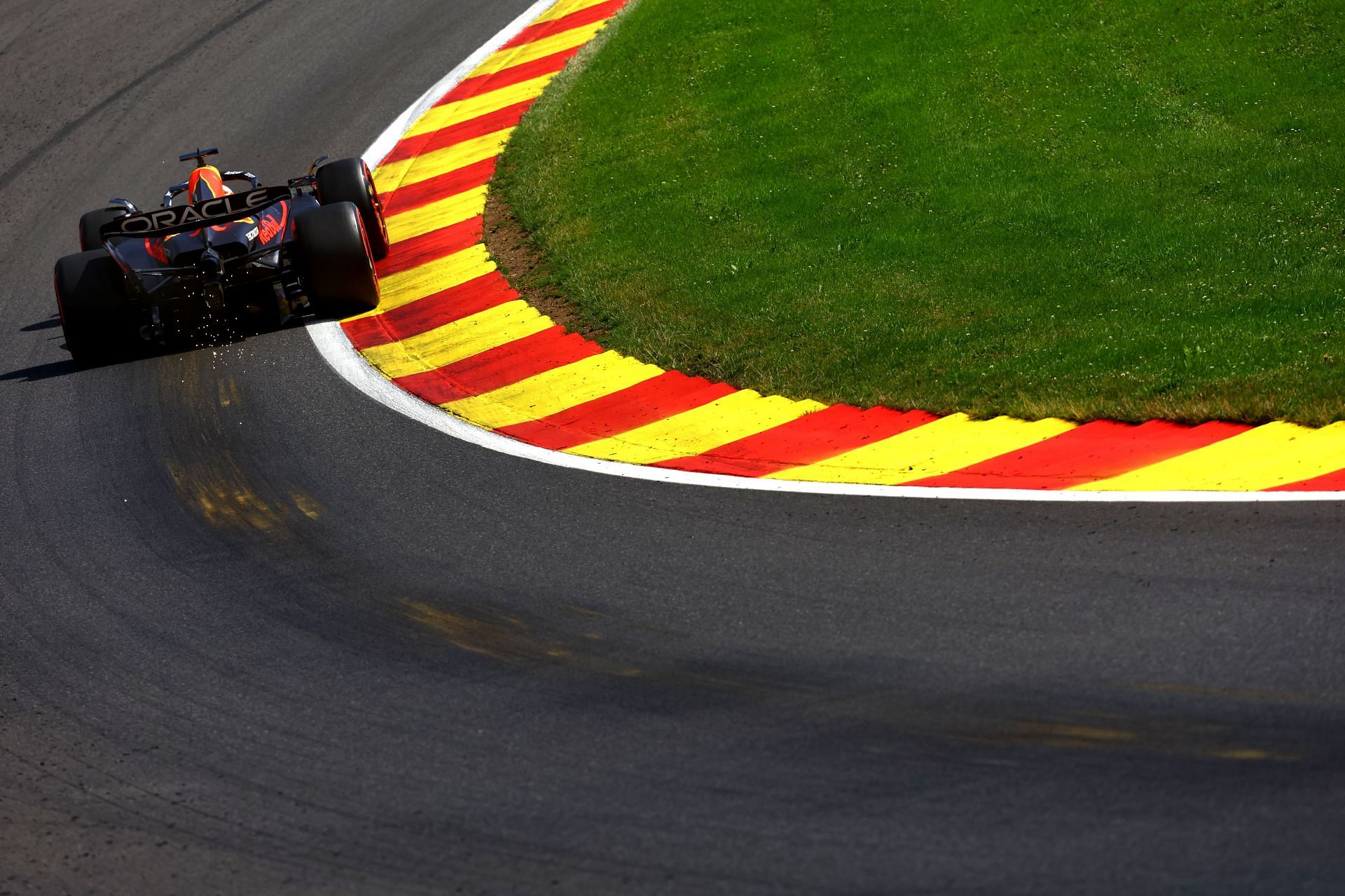 With no other driver able to challenge Verstappen's pace, only the elements of nature threatened the Dutchman's route to victory lane. With a few spots of rain falling on the track, the Red Bull of the reigning champion had a brief moment as he climbed the notorious Eau Rouge-Raidillon corner.
