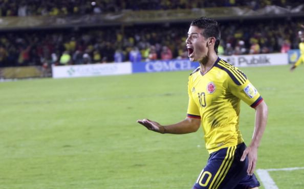 James Rodriguez playing for Colombia celebrates a goal against France at the Sub-20 World Cup 2011 (Getty Images)