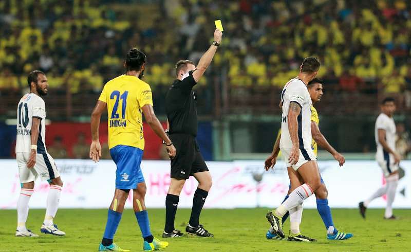 Vineeth was introduced into the game by Coppell in the 79th minute of the game as a substitute for winger Mohammed Rafique. Goa player Richarlyson received his second yellow card of the night for a double-legged tackle he made on the Kerala striker, who was trying to make an instant impact on the game. Vineeth himself also got booked for excessively complaining about the opposition's time wasting to the referee.