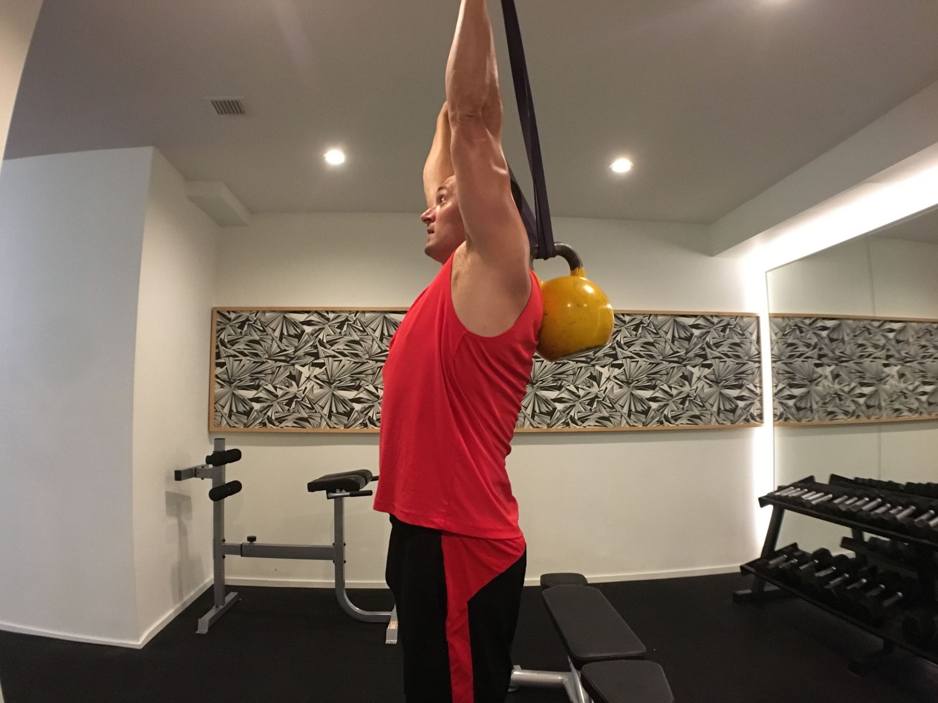 The overhead tricep extension is a great exercise for this purpose. Every tricep routine makes sure to feature the overhead tricep extension as a key player.