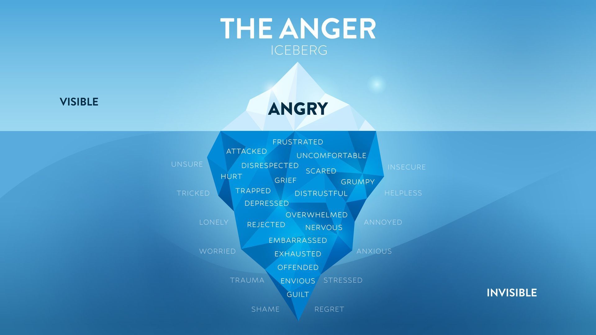 Before understanding the types of anger management therapy, it can be helpful to talk about the anger iceberg. Much research has been dedicated to understanding what causes and underlies anger.