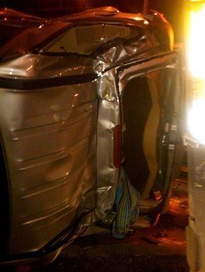 "My car flipped sideways and the trunk hit a light pole, it completely crushed in. The airbags deployed, and all I could smell was gunpowder. There was broken glass everywhere, and I tried to open the passenger door, but it was stuck. Luckily, there was still power in the car. I opened the sunroof and crawled out."