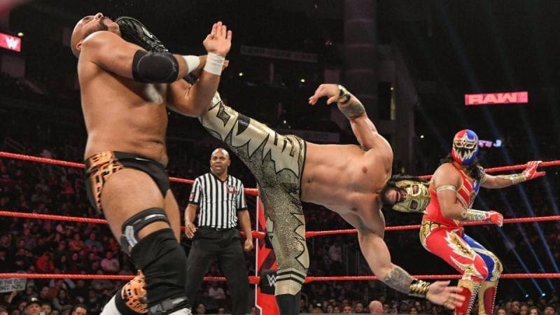 Dawson couldn't keep up with the 3-on-1 attack much longer. Kalisto hit him with a Salita Del Sol and Metalik followed it up with a splash from the ropes.