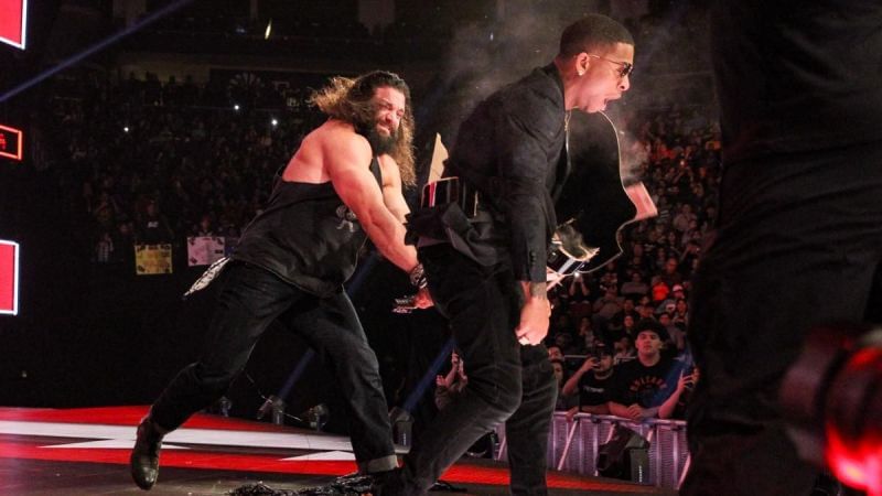 Lashley posed for the audience before taunting Elias. Elias charged at Lashley with the guitar but got kicked in the gut for his troubles. Elias replied by sending Lashley face-first into the entrance screens. Balor then tossed Lio Rush in front of Elias and The Drifter smashed him with his guitar.
