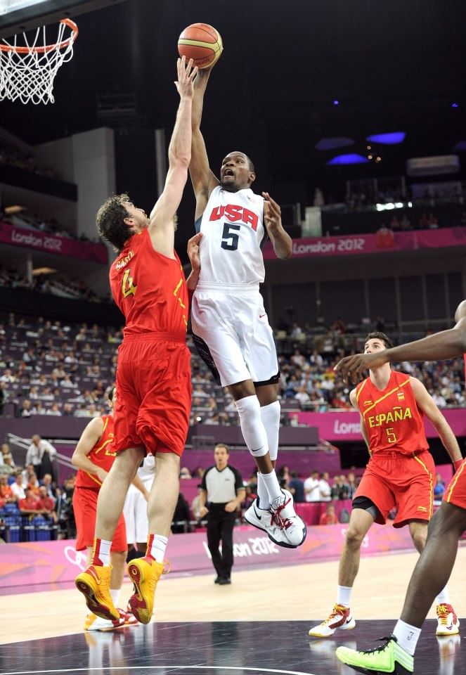 Spain made them sweat for it. USA required a 30 point, 9 rebound night from Kevin Durant and 19 points and a couple of clutch baskets by LeBron James, and 17 from Kobe Bryant to survive for the victory. Spain made the most of their advantages through the course of the game, relying on their size advantage of Pau Gasol (24 points 8 rebounds), Marc Gasol (17) and Serge Ibaka, and the on-point outside shooting of Juan Carlos Navarro (21 points) and Rudy Fernandez. But in the end, the brave Spanish contingent just couldn’t keep up with the string of talented closers on the American side.