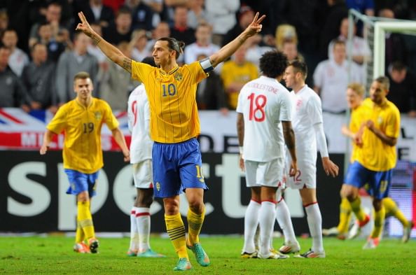 STOCKHOLM, SWEDEN – NOVEMBER 14: Zlatan Ibrahimovic of Sweden celebrates scoring his third goal during the international friendly match between Sweden and England at the Friends Arena on November 14, 2012 in Stockholm, Sweden. (Photo by Michael Regan/Getty Images)
