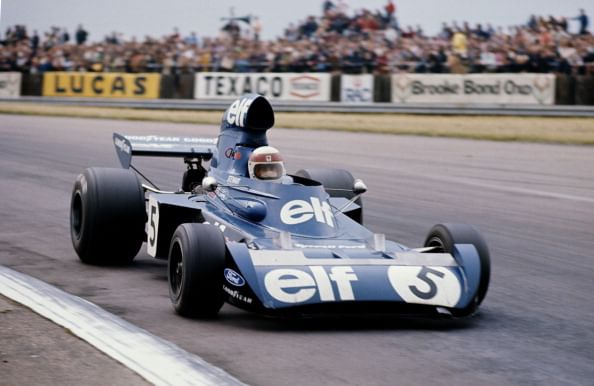 Jackie Stewart of Great Britain drives the #5 Elf Team Tyrrell Tyrrell 006 Ford Cosworth DFV during the British Grand Prix on 14th July 1973 at the Silverstone Circuit in Towcester, Great Britain