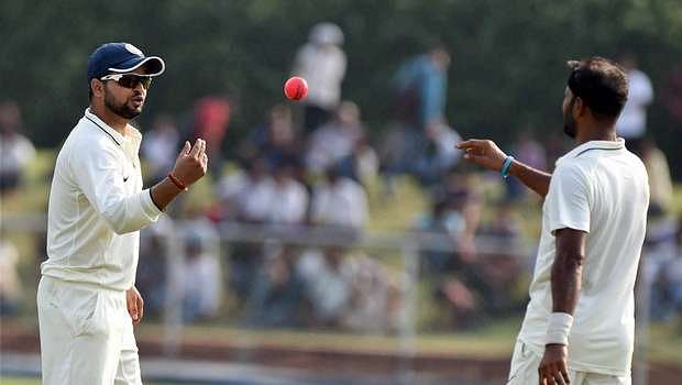 Abhinav Mukund was the only batsman who settled in on the first day, finishing with a score of 77. The only other respectable scores on the day were Suresh Raina’s 35 and Saurabh Tiwary’s 50, as the pink ball seemed to find its way through the defence of all batsmen.