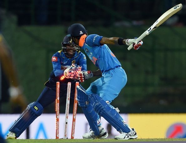 However, it went horribly wrong for his team from then on as Akila Dananjaya cut through the Indian middle order with his unpickable deliveries. He scalped the wickets of KL Rahul, Jadhav and Kohli in one over, and then followed up by dismissing Hardik Pandya and Azar Patel in the remainder of his spell.