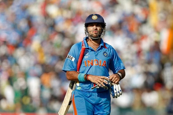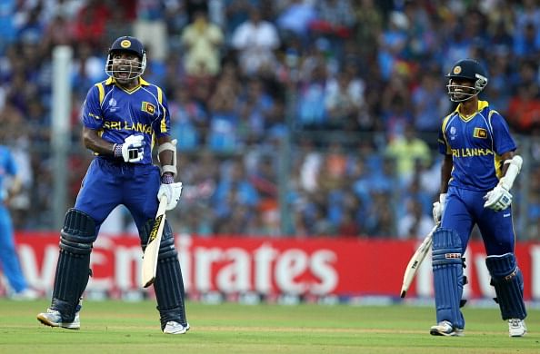 Kumara Sangakara scored 48 runs before being dismissed by Yuvraj Singh: