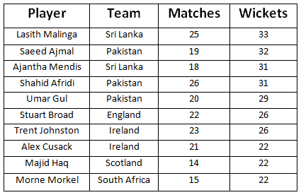 Lasith Malinga is the highest wicket-taker in ICC World T20. He has taken 33 wickets in 25 matches.