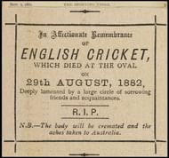 Not until their eighth meeting did Australia defeat England, way back on a sunny day in August 1882. The shock of the defeat was so massive, that it was reported that a man died of a severe heart-attack in the stands. Papers across England ran mock obituaries flagging off the ‘end of English cricket as we know it’. But one of the most popular pieces of cricket journalism was published a week after the loss in The Sporting Times.