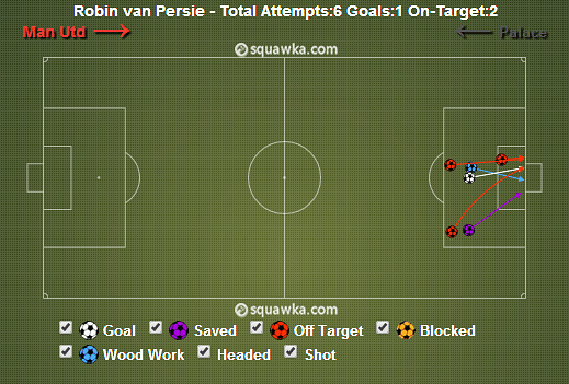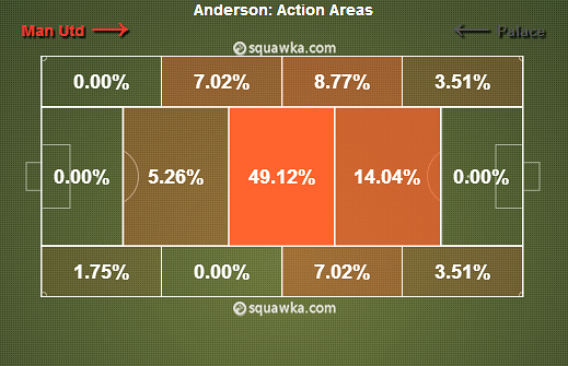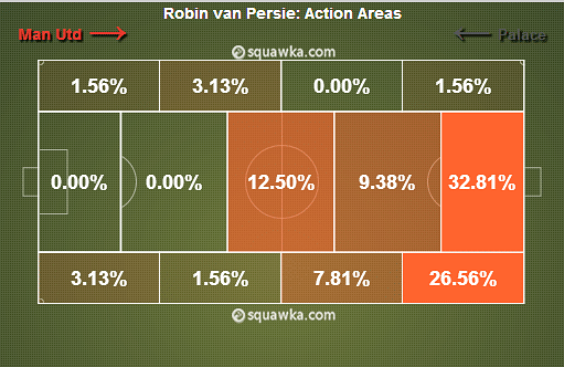 In the game against Crystal Palace, the only central player to be advanced enough in order to provide the Dutch striker with good service was Wayne Rooney – the central midfield pairing of Anderson and Michael Carrick were not pushed forward enough to help Van Persie, leaving him starved of proper service.