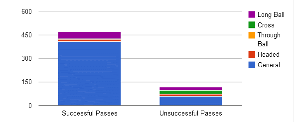 Also, the service which Van Persie receives from the wide area is limiting the goals which he scores. The graph below demonstrates Man Utd’s poor crossing against Sunderland, making it very difficult for Van Persie to get on the scoresheet.
