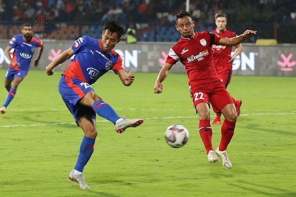 Bengaluru FC managed a smart set-piece routine which saw Dimas Delgado play a short ball to Sunil Chhetri, who rushed out from the crowd.