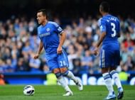 LONDON, ENGLAND – OCTOBER 06: John Terry of Chelsea in action as Ashley Cole looks on during the Barclays Premier League match between Chelsea and Norwich City at Stamford Bridge on October 6, 2012 in London, England.