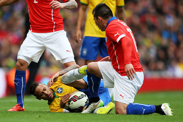 “That can't be considered part of the game, no. If we say that is part of the game, then the name [of the sport] is wrong. We can't call it football -- we should call it UFC. I am the one who suffers the pain. I think it is because of the rivalry [between Brazil and Chile], and you end up suffering because of it,” Neymar said.