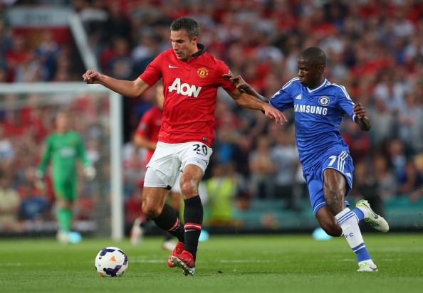 Robin van Persie of Manchester United competes with Ramires of Chelsea during the Barclays Premier League match between Manchester United and Chelsea at Old Trafford on August 26, 2013 in Manchester, England. (Photo by Alex Livesey/Getty Images)