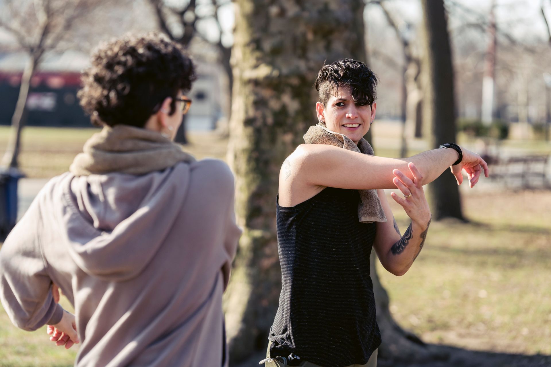 - To feel a triceps stretch, enlarge the circles. After 10-15 seconds, make the turn around.
