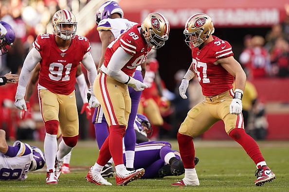 Two weeks later they put that whooping on their opponents for the Championship Round and even the following game at Baltimore against what was then viewed as the class of the league, it took a long field goal with time running out to beat this team. After an epic 48-46 shootout win at New Orleans, injuries started piling up for this squad in the Bay. The defense without a few starters allowed an average of 27 points over the final three weeks of regular-season action, which led to a loss against Atlanta on the last play of the game and a tackle that put the Seahawks just a couple of inches short of taking the NFC West from the Niners. Nobody benefitted from that extra week of rest more than San Francisco, as they managed to bring back Dee Ford, Kwon Alexander and Jaquiski Tartt on defense, which led to immediate success, as they managed to hold the Vikings, who were just coming off an upset win over the Saints, to only ten points and they easily advanced to the NFC title game.