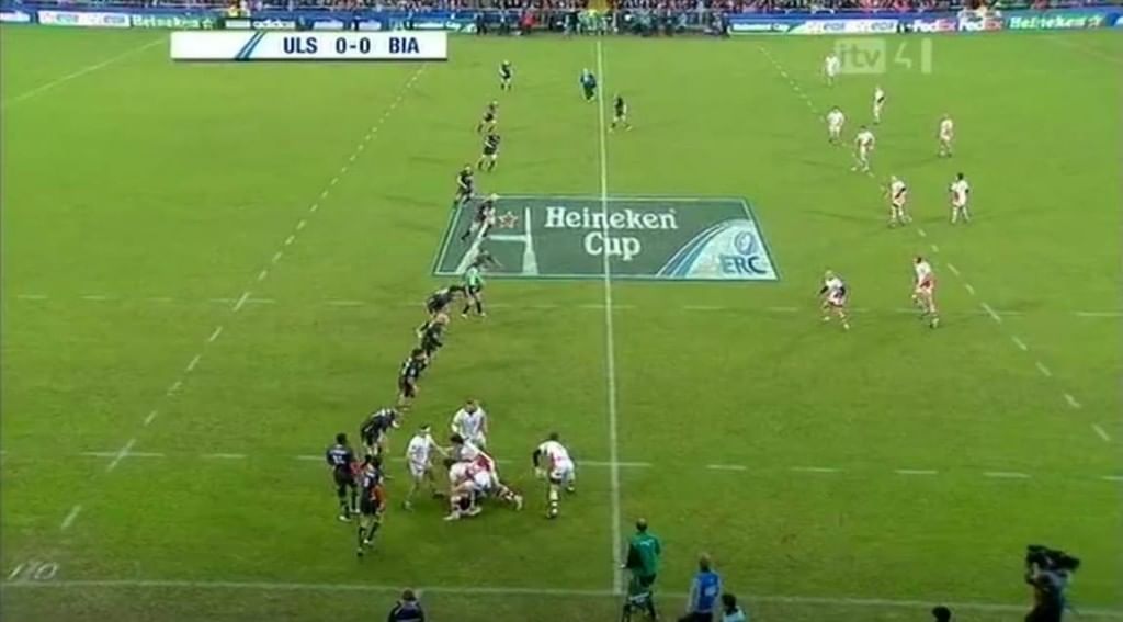 A standard defensive line in a game of Rugby. The slow moving nature of the defensive line restricts the velocity of the majority of hits that take place during a game(credit: conversationalrugby.wordpress.com)