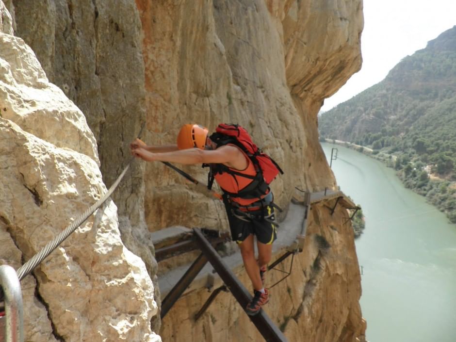 A walkway along a limestone gorge in El Chorro, El Caminito del Rey was named when Alfonso XIII of Spain crossed the dangerous pathway to open the Conde de Guadalhorce Dam in 1921. Despite several accidents, climbers try to reach the top.