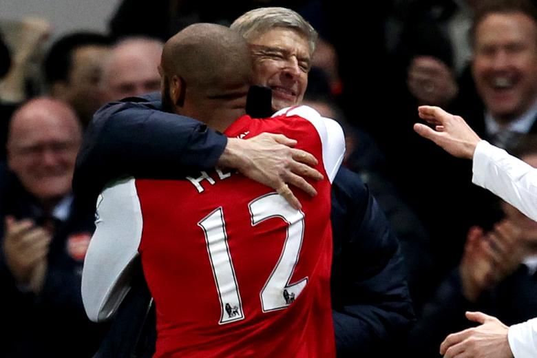 Henry received a through ball from Alex Song and put it in the back of the net in style. He raised the roof of the Emirates with the goal and then ran straight to Arsene Wenger and hugged his compatriot who served as a father figure for the striker.