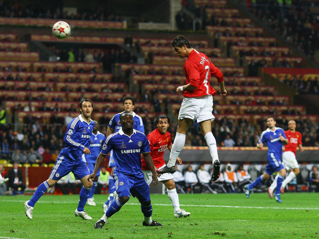 In the 26th minute of the game, Ronaldo rose above the Chelsea players to connect to a cross from Wes Brown and headed it powerfully past Petr Cech.