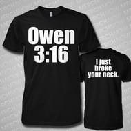 Austin used this T-shirt design to symbolize what he did to Jake Roberts at the 1996 King of the Ring contest. Owen Hart came up with something similar indicating "Owen 3:16/I just broke your neck". This was to mock Austin by conveying him that Owen Hart broke his neck at the 1997 SummerSlam PPV.