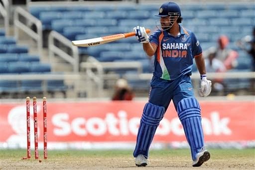 Dhoni and Yuvraj Singh kept the West Indians at bay for 62 balls, with the latter unleashing a flurry of boundaries. It seemed that India would actually come back into the match. Jerome Taylor continued his extended spell, and the floodgates opened once again.
