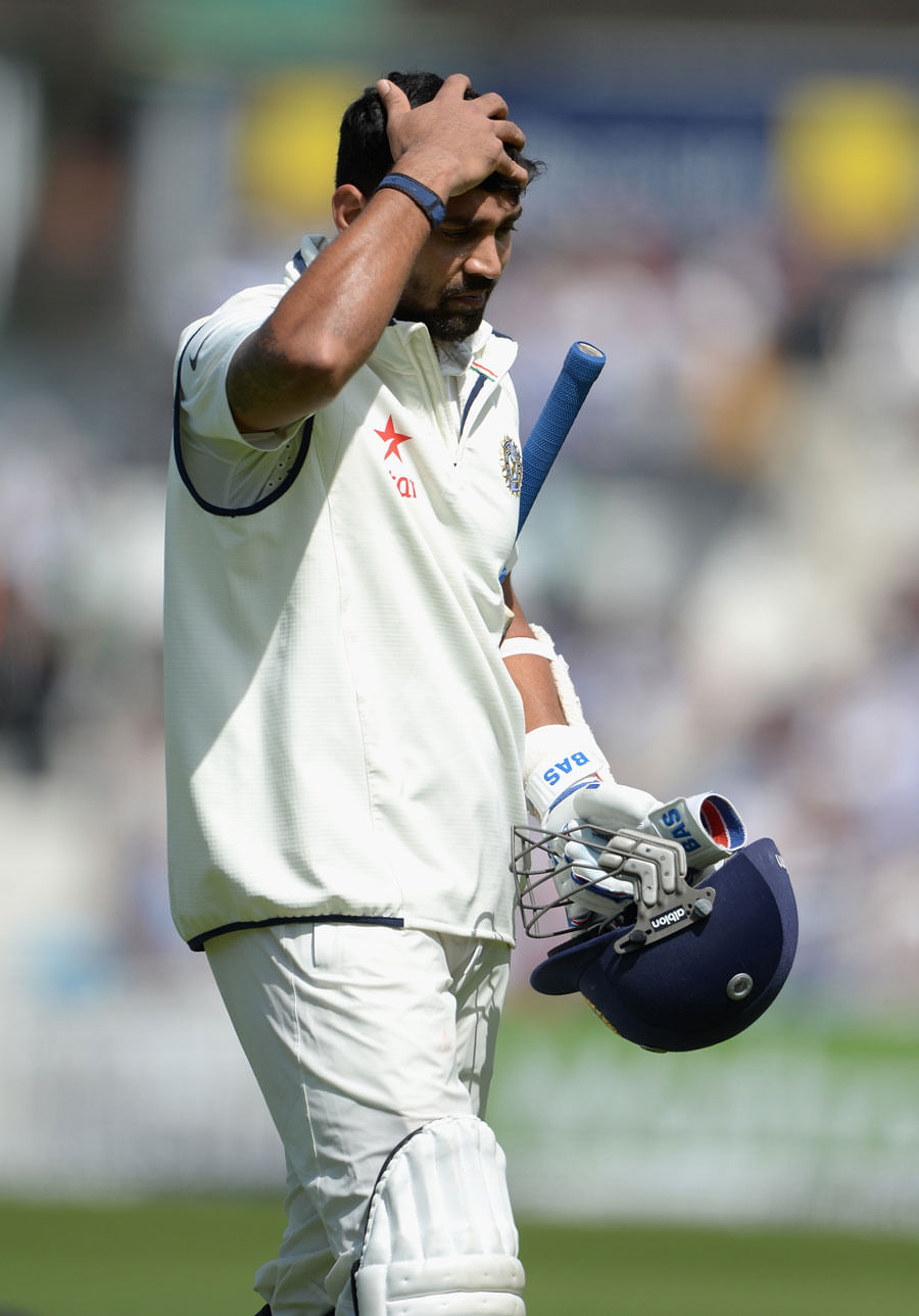 M Vijay makes me smile. He appears to be doing the 'lungi dance' every time there is a catch in the slips. Sheer brilliance to sheer atrocity. Vijay scored runs in the first two Tests, thank you very much Vijay. But why did you lose your fielding form cascaded with loss of batting form? Team India were already under pressure. England were leading by over 200 runs, and Vijay managed to drop dollies just to add further pressure on the rest of the team. This additional pressure showed on the bowlers, fielders and, later, during his own batting.