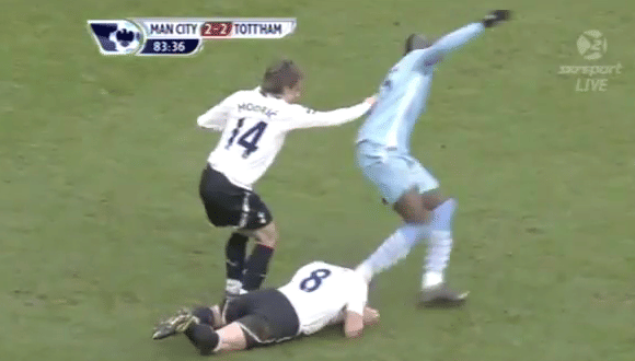 TV videos showed Balotelli stomping a boot on the head of a prostrate Scott Parker. The referee missed the 83rd minute moment during a Manchester City vs Tottenham Hotspur match, which was decided by a Balotelli penalty in injury time.