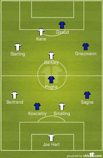 Substitutes: Hugo Lloris, John Stones, Raphael Varane, Blaise Matuidi, Anthony Martial, Wayne Rooney