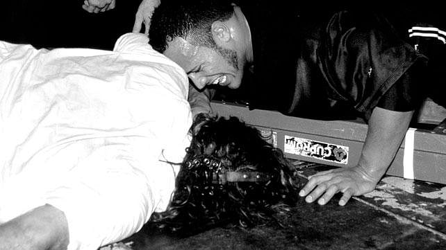 Foley crashed through the Spanish announce table from a height of 16 feet, but the match was not yet over. Foley continued to fight, while he was being stretchered off he got up and climbed the cage again. He was then choke-slammed through the cage which was a worse fall than the first one. Foley again got up, with a tooth lodged up his nose and there was nothing probably that could keep him down.