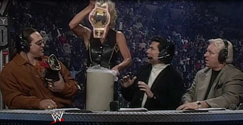 Following recommendations from Eric Bischoff, the newly named Madusa appeared on WCW television and dropped the WWF Women’s Championship in the bin. This was a hugely symbolic act, showing that WCW was now in a position to publically insult their rival without fear of repercussions. Blayze was blacklisted from the WWF for nearly 20 years after this incident but has since been welcomed back into the fold, joining the Hall of Fame class of 2015.