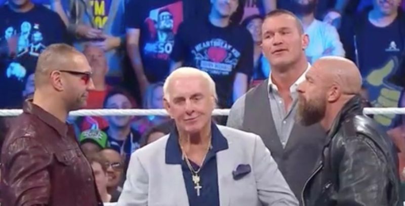 The two had a stare-down before Ric Flair interrupted. It's safe to say that the seeds have been planted and we could be getting Batista's farewell match as early as Wrestlemania 35 as his next big venture "Guardians of the Galaxy Vol 3" got pushed back.