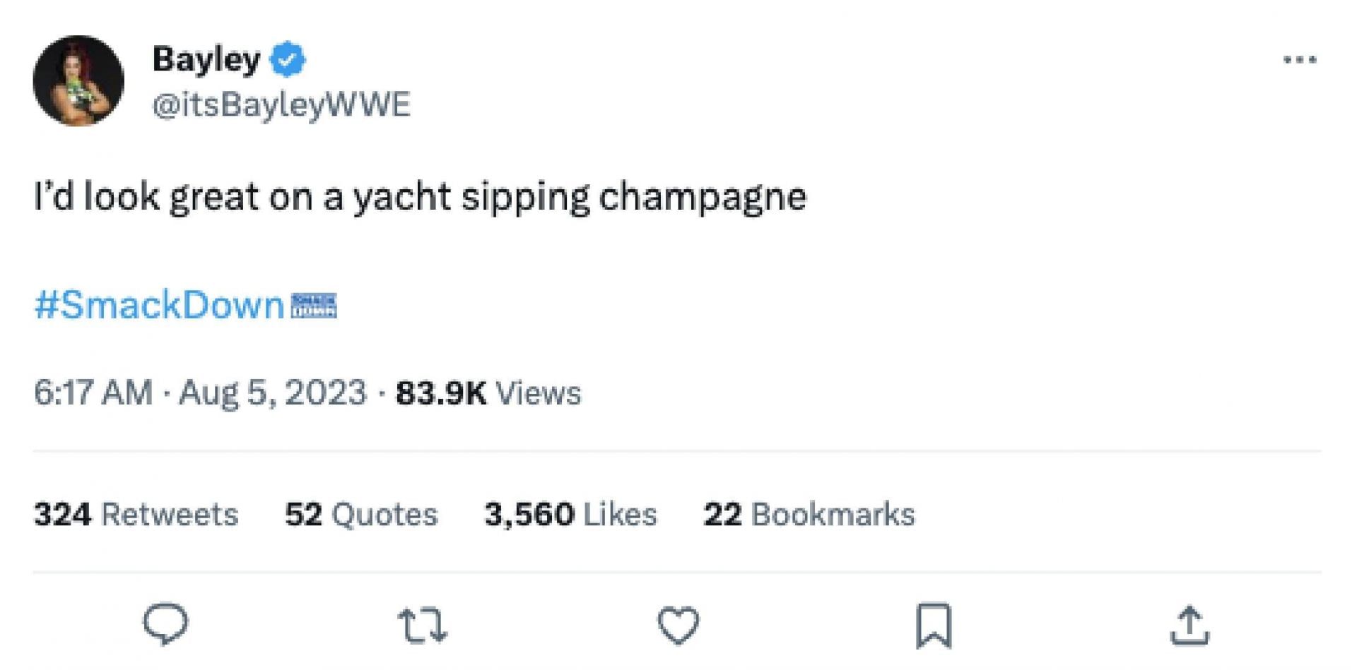 The promo was a little bit different and seemed to get the attention of Bayley who stated that she would look great sipping champagne on a yacht.