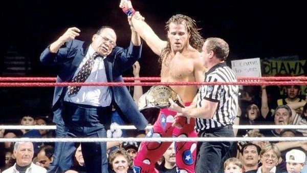 When Michaels locked Hart in the sharpshooter submission hold, McMahon who was stood at ringside, demanded that the time-keeper ring the bell. Michaels was the new champion and Hart had been screwed.