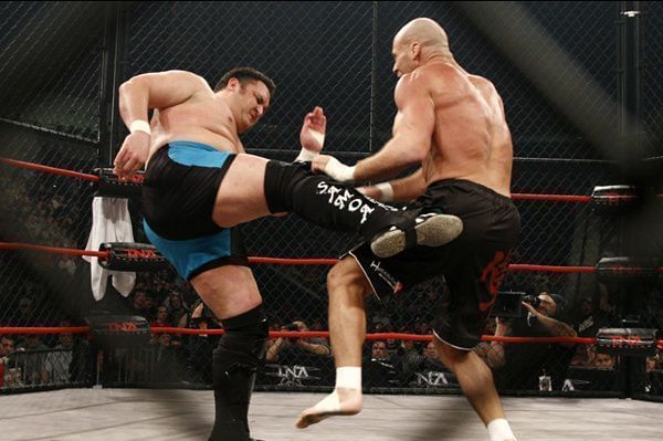It’s not impossible to weave the styles together, though. Perhaps the best example would be Kurt Angle vs. Samoa Joe from Impact Wrestling’s 2008 Lockdown event, where the two started out with a very MMA influenced approach before slowly working their way into a more traditional pro wrestling match.