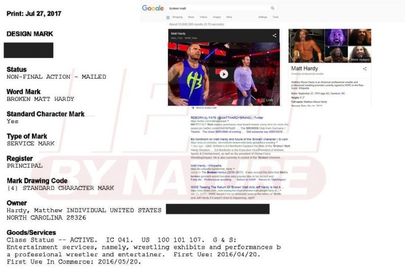 The first trademark, "Broken Matt" was refused for a few reasons. One is that Matt Hardy had already a trademark filed for "Broken Matt Hardy" first. GFW would have to prove that there is no potential conflict between the two trademarks - which they would definitely not be able to do.