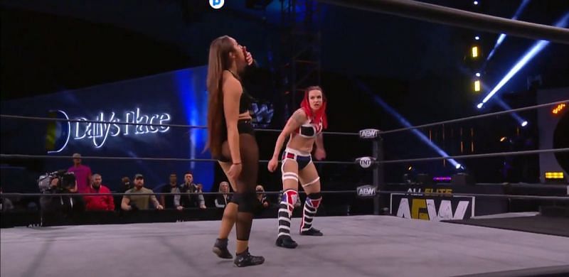 Penelope Ford used classic heelish tactics to land a cheap shot after the AEW Dark match began. Price evaded several incoming strikes with her agility, and Ford needed a minute to recuperate.