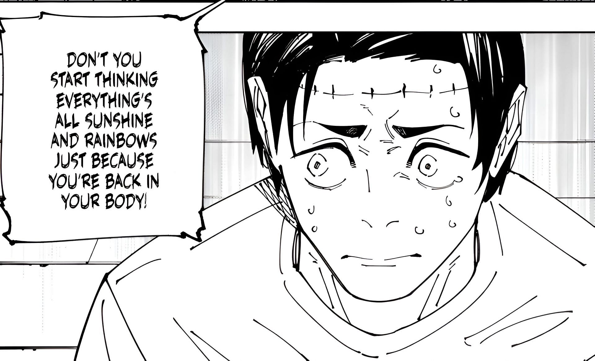 In Jujutsu Kaisen chapter 261, Yuta Okkotsu returned after he was sliced into two pieces by the King of Curses' cursed technique. However, he returned as Gojo Satoru as Yuta used Gojo's dead body as a vessel through Kenjaku's cursed technique.