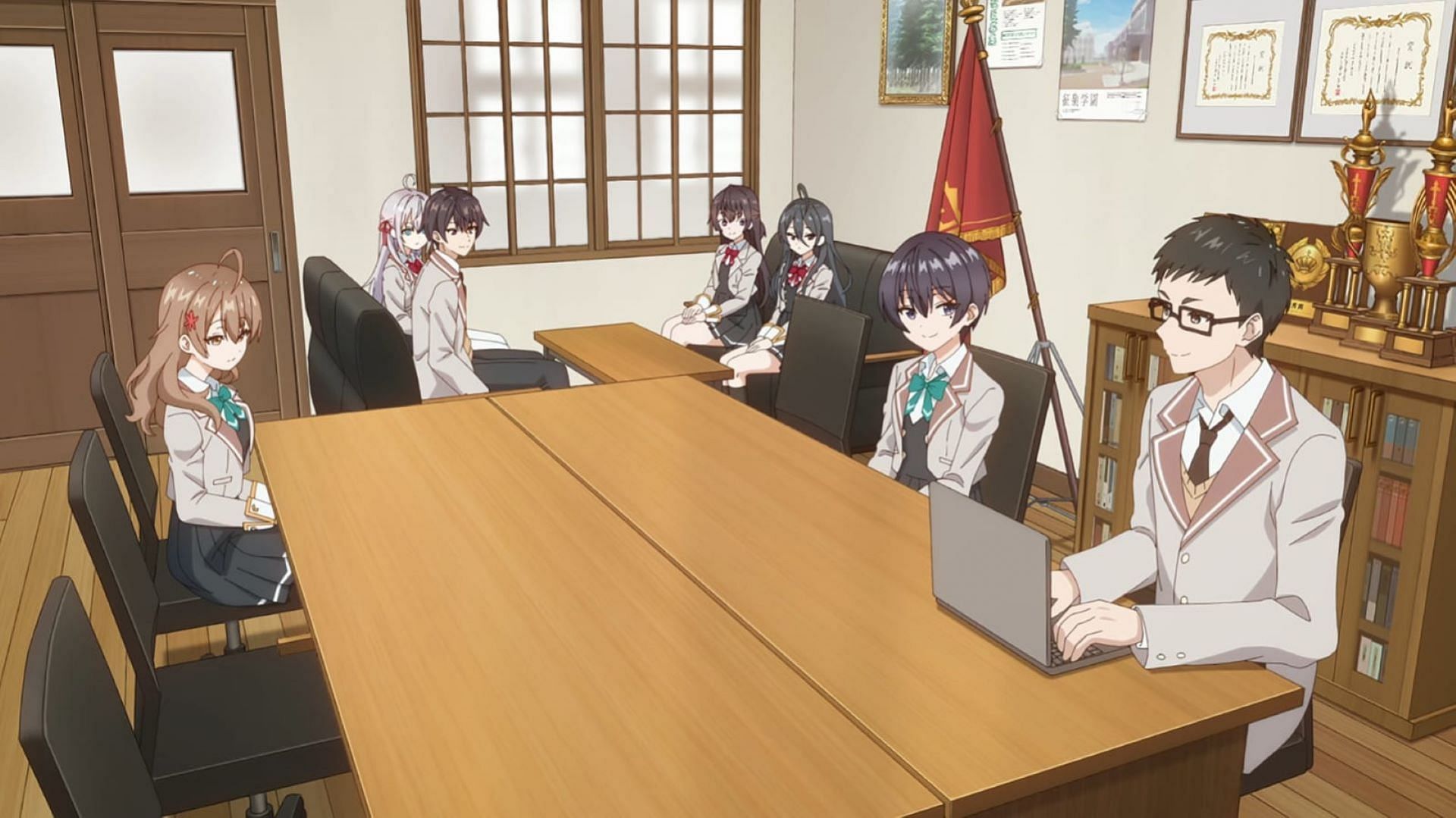 The narrative for Alya Sometimes Hides Her Feelings in Russian episode 10 switches to the student council room, where President Kenzaki discusses the summer uniform proposal. He is glad to inform everyone that it's possible to introduce the new uniforms after the summer break.