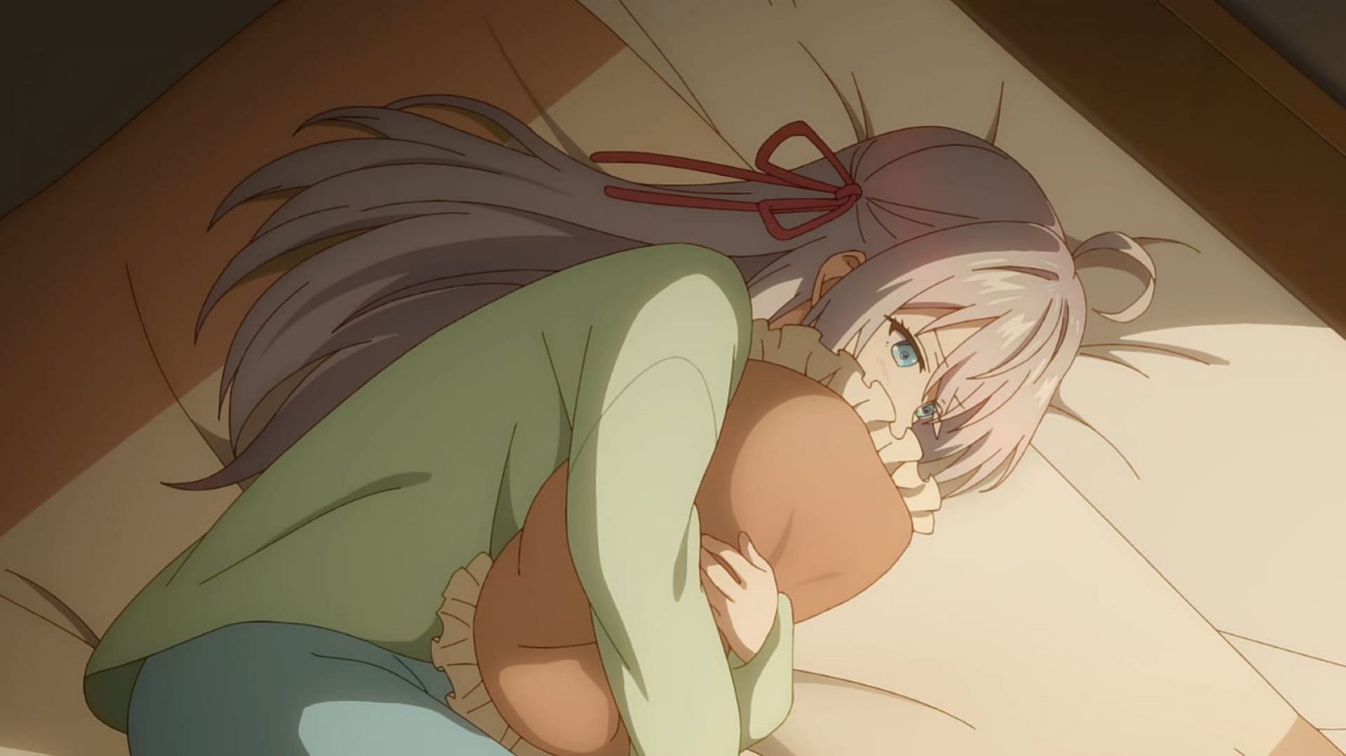 Alya Sometimes Hides Her Feelings in Russian episode 10 time-skips to the day, when Masachika takes Alya out to celebrate his belated birthday. The silver-haired girl shows up at the designated location in a beautiful dress. Masachika realizes that she's grabbing everyone's attention.