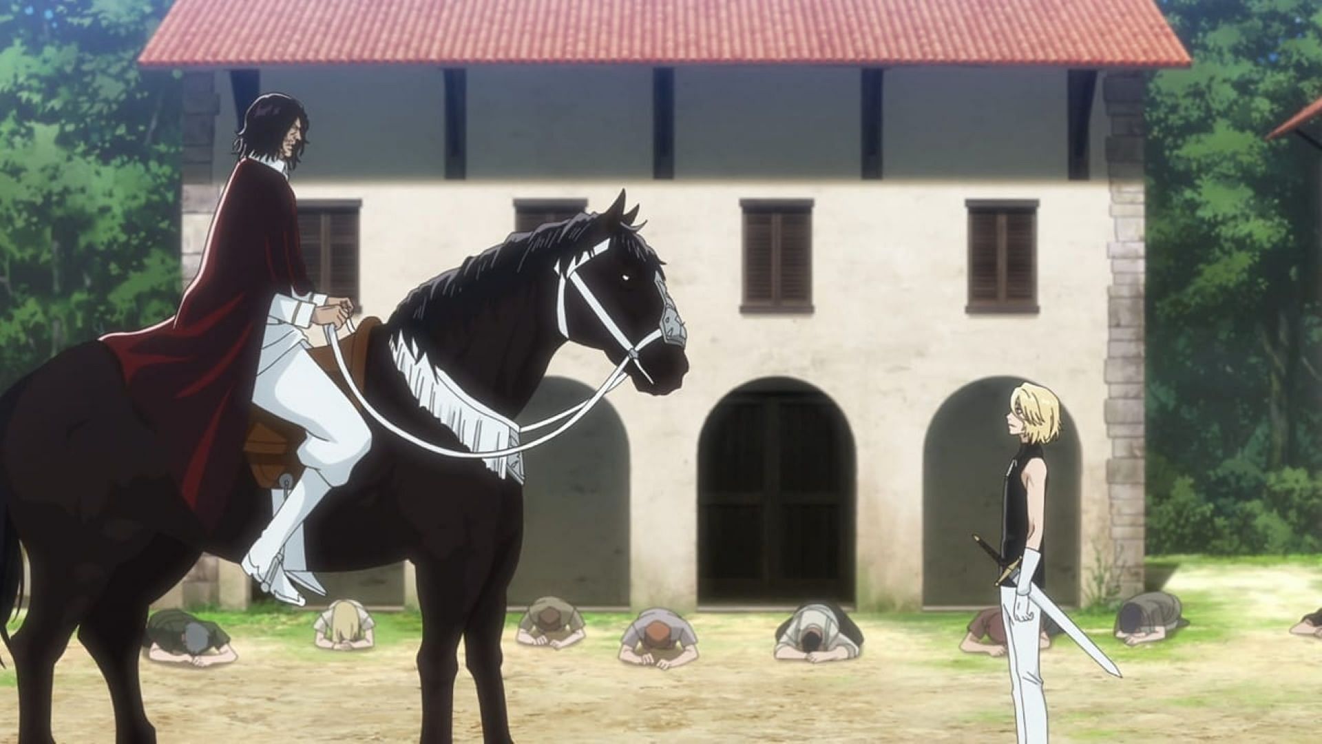Bleach TYBW episode 38 begins with a scene from the past, showing how Jugram Haschwalth and Bazz-B met for the first time. One day, while hunting for a rabbit, Bazz B saw a young boy trying the same with a regular bow and arrow. Bazz-B then kills the rabbit with a Holy Arrow and asks Jugram what's wrong with him. During their short exchange, the duo learns each other's names.
