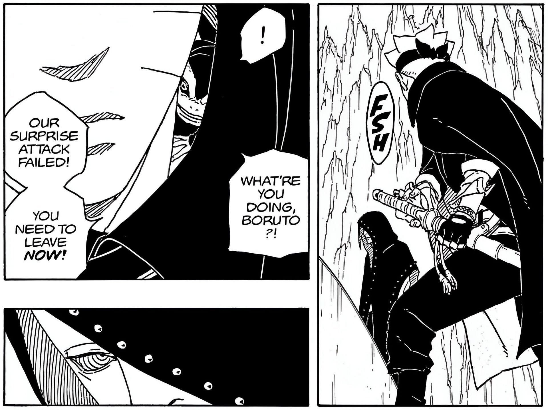 Hence, when they made their first appearance in the manga series, the protagonist's focus should have been on the group's leader Jura. Nevertheless, Boruto was instead focused on the God Tree that resembled Sasuke, Hidari.