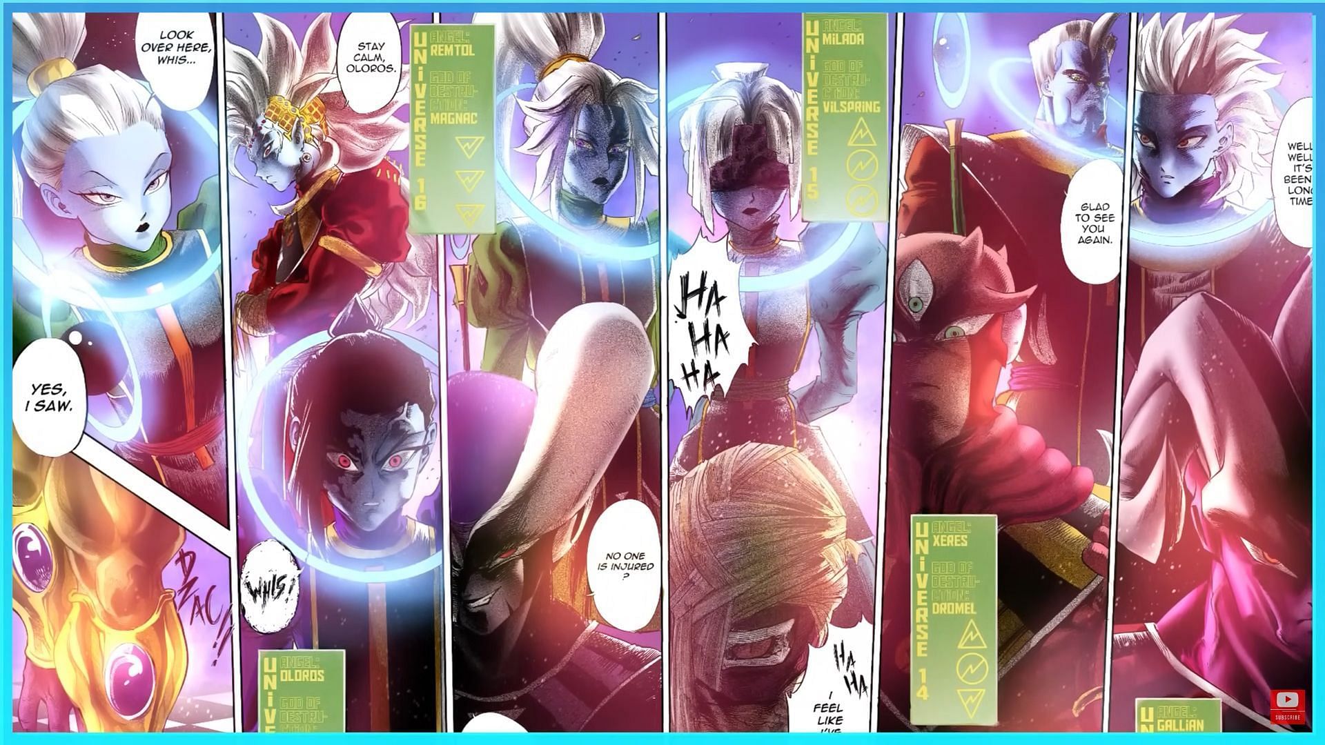 However, this was not a pleasant reunion. Immediately after getting restored, the Gods of Destruction and angels of universes 13 to 18 arrived at Zeno's palace to confront the Grand Priest. Headed by the mother of all angels, this group wished to get rid of the divine hierarchy and abolish the trial that the father of angels was so obsessed with.