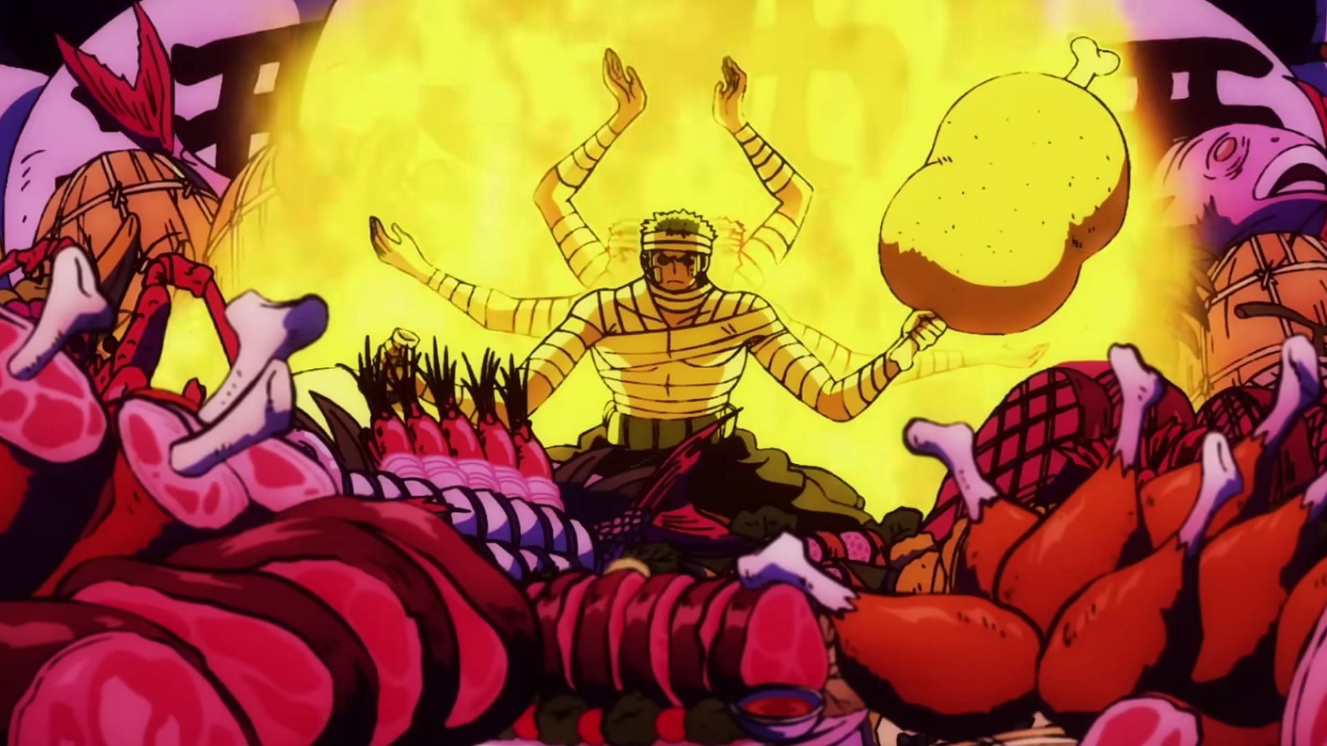 This Devil Fruit allows the gluttonous Wapol to stretch open his jaws to bite and consume any target, regardless of them being normally edible or not. The meal is digested and then absorbed into Wapol’s body, and the latter can even reconfigure the eaten items to incorporate them into his physique or reconfigure them to create something new.