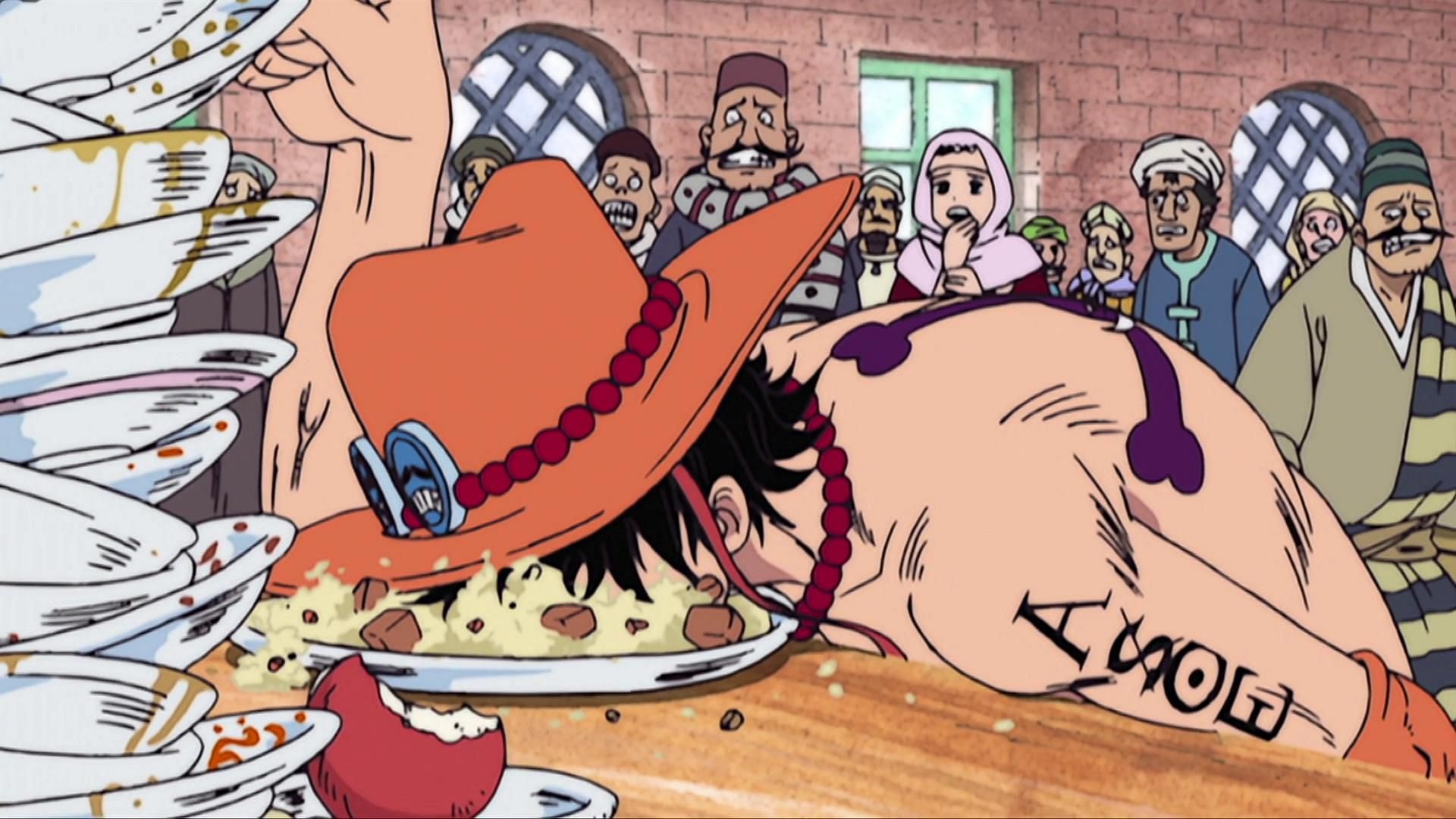 This was seen during Ace’s stop at the Spice Bean, a restaurant in Arabasta where the young pirate ended up attracting attention from the crowd with his narcolepsy. A further testament to Ace’s out-of-the-ordinary appetite, he hopped on Buggy’s ship simply because he was drawn there by the smell of their food.