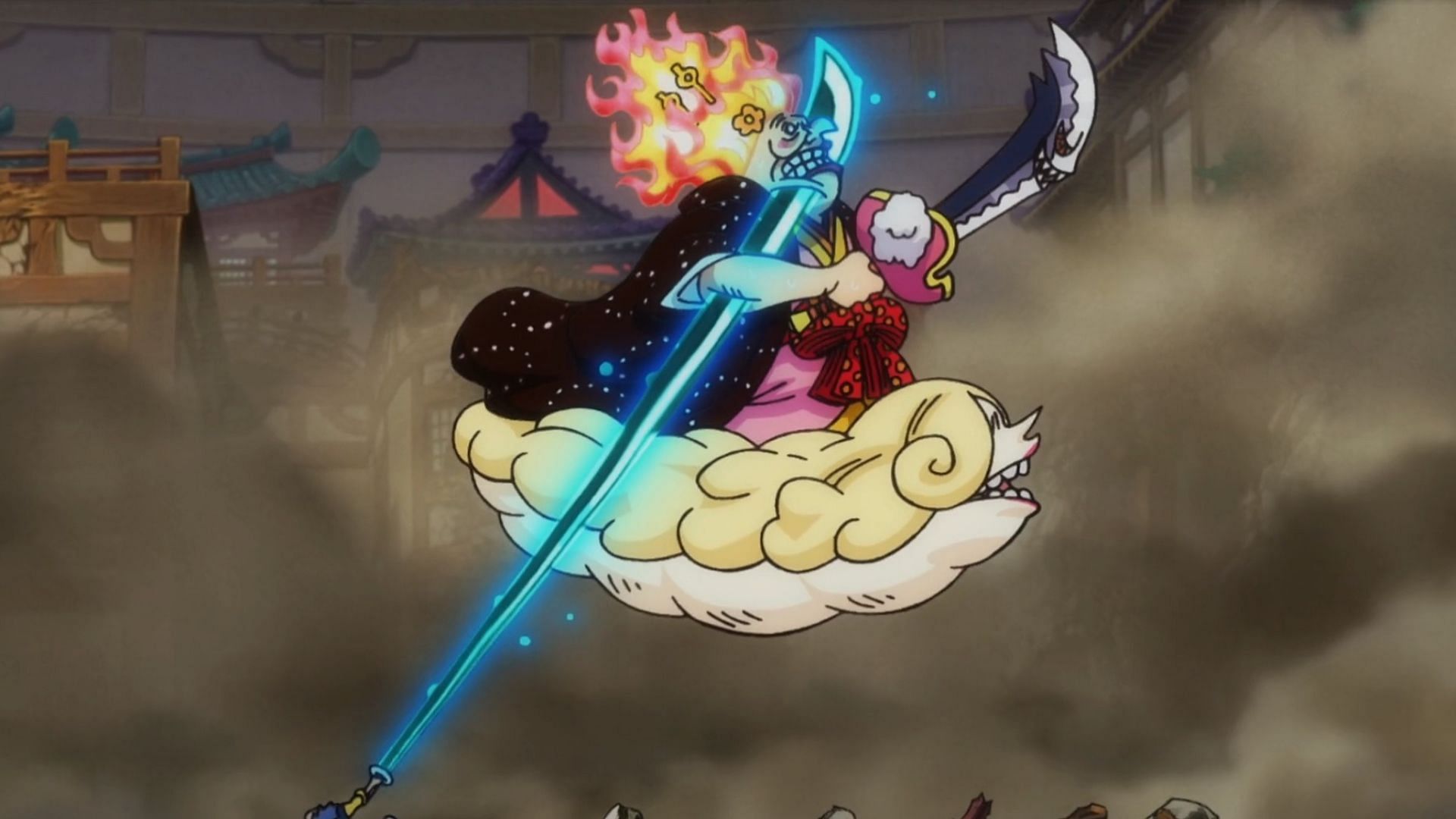 In the meantime, Kid uses all of Big Mom's Homies to create an immense bull-like armor. He then launches a powerful strike against Big Mom that appears to inflict significant damage on her. The episode ends with Kid and Law making a solemn vow to stop Big Mom from reaching the roof at all costs.